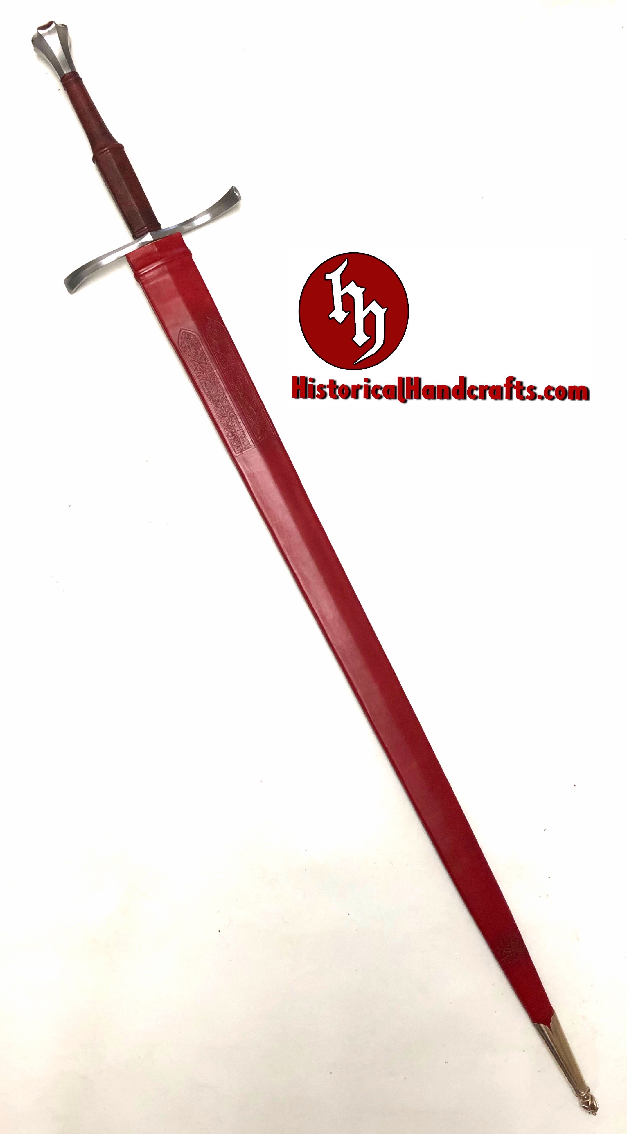 The scabbard has leather over a poplar core fitted around an Albion Earl and with a bronze chape from Tod Cutler. Space was left for the client to attach his own belt rigging.