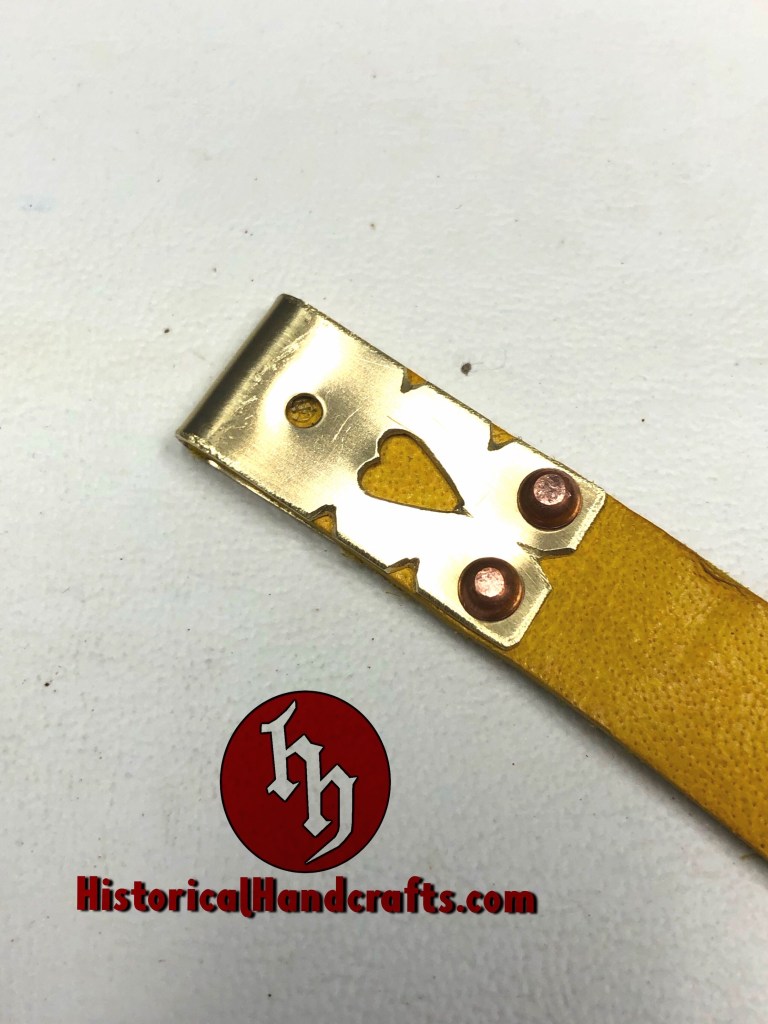 The brass strap end was made by myself; the buckle is mass produced. Poplar core covered with leather.