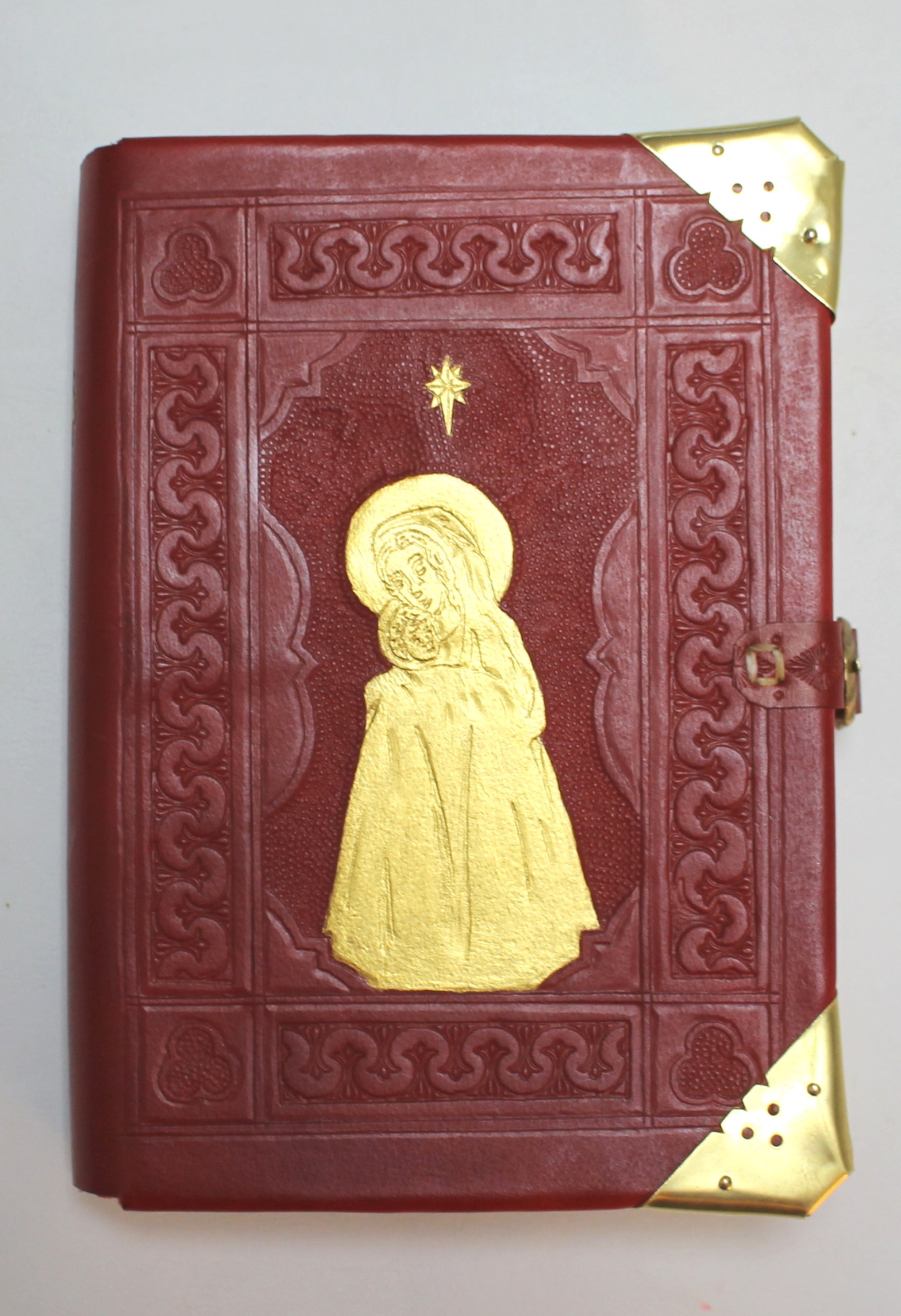 A leather book cover to replace the old one of a bible. Decorated in the style of many Renaissance originals and monogramed for the owners’ name. Metal corners made by myself.